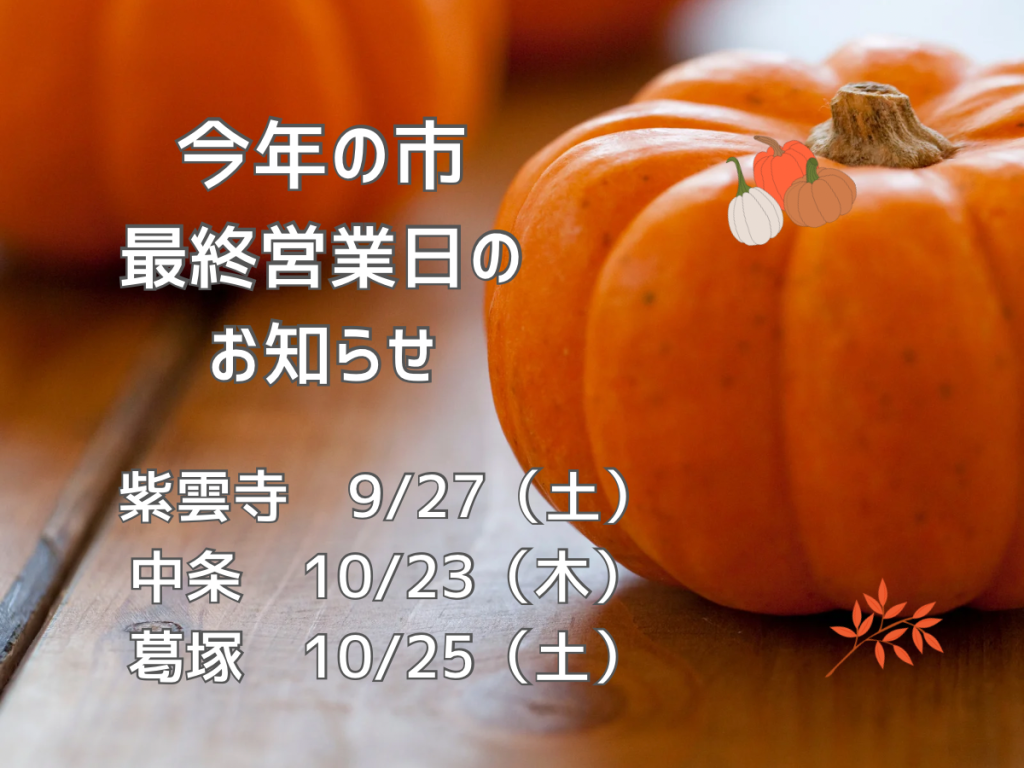 私たちたねごん、定期的に皆さんのお近くの市に出店させて頂いておりますが、今年の最終出店日お知らせいたします