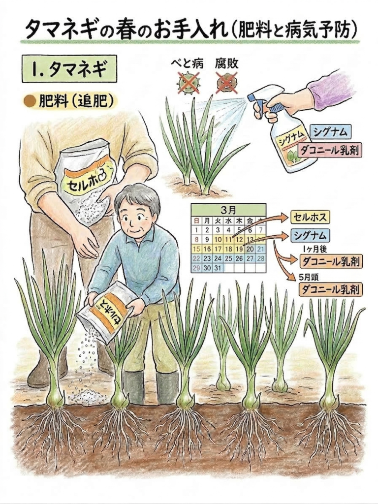 - おすすめ製品: 根を張らせて玉を締める効果がある**「セルホス」**が、タマネギやネギには非常に効果的です。